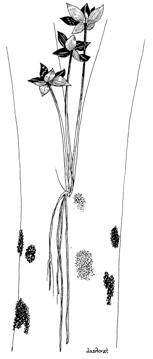 Molineria is unusual in that the flowers are not displayed above or within the leaves like most flowering plants. Its yellow flowers can be found attached to the main stem just above the ground. Ground dwelling ants, beetles or small marsupials may pollinate the flowers rather than birds or flying insects. A weevil is one particular known pollinator.