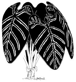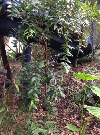 A good example of a rainforest leaf covered by other plants can be seen in the photographs on the western wall at the city end of the conservatory.